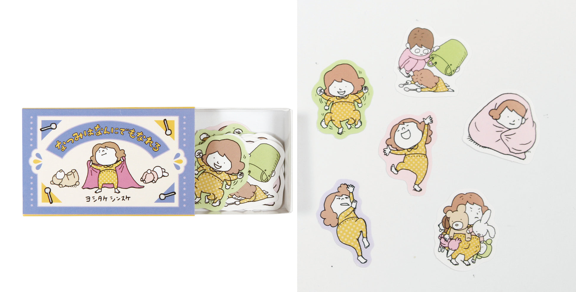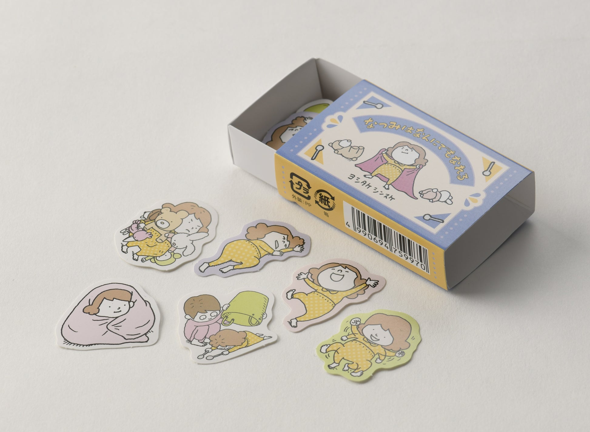 ■ヨシタケシンスケの人気絵本『なつみはなんにでもなれる』のフレークシールが、かわいいマッチ箱風ケースに入って登場。