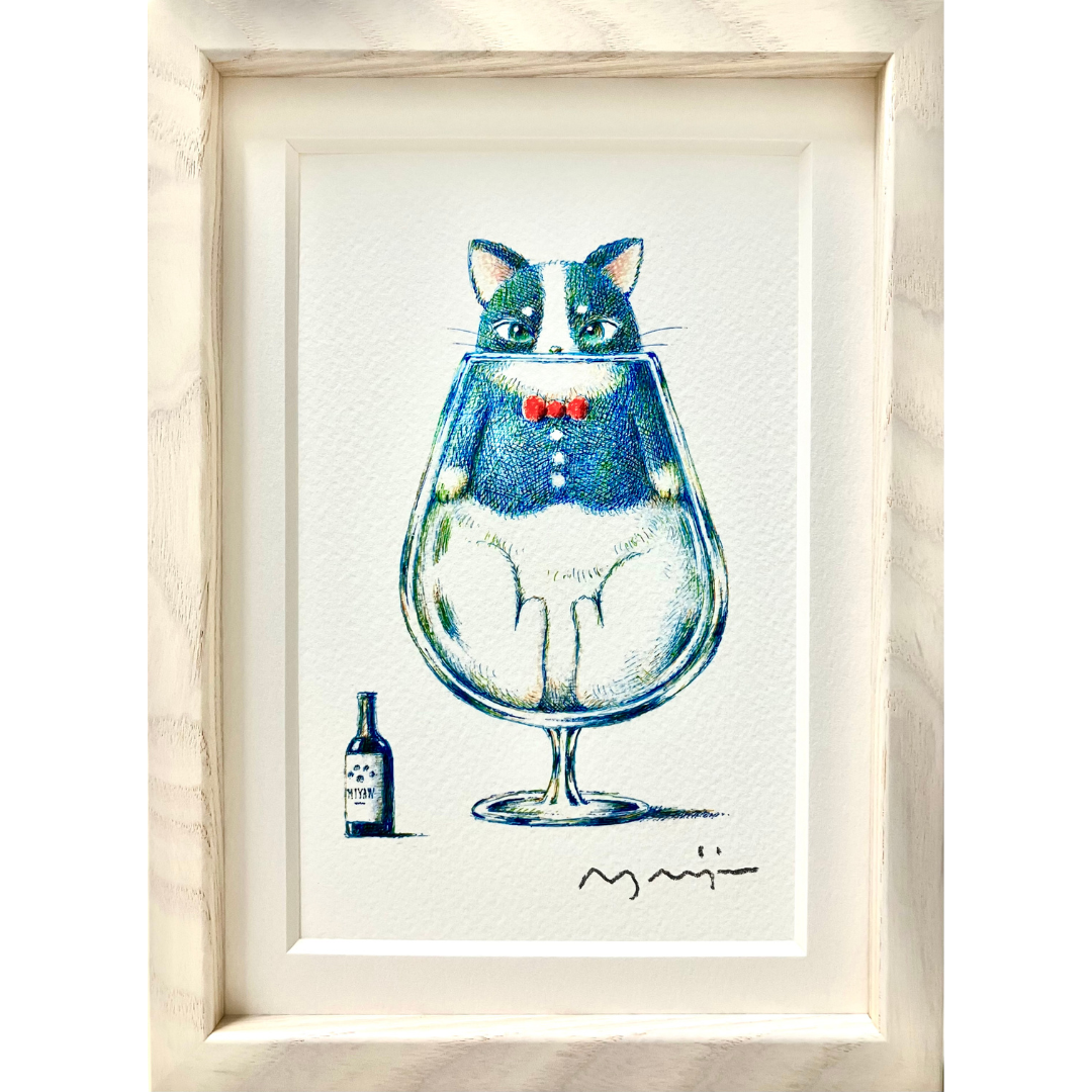 (「気まぐれ猫のお届けもの」複製原画)身も心も赤ワイン
