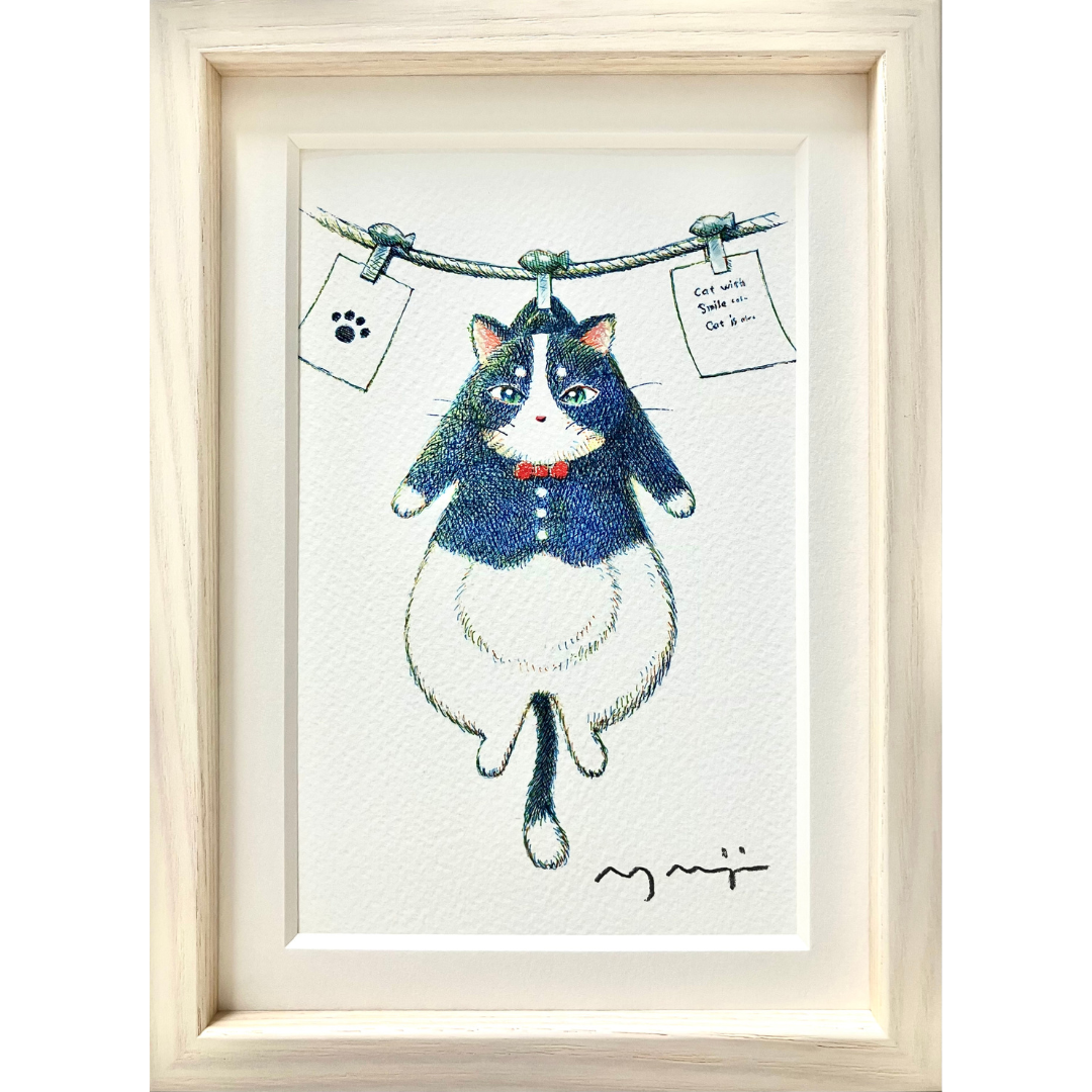 絵本作家・はせがわゆうじさんによる月刊誌『PHPスペシャル』の人気連載「気まぐれ猫のお届けもの」のイラストを、高精細で耐久性が高い「ジクレー版画」にし、無垢材で額装しました。はせがわゆうじさんの直筆サイン入り。